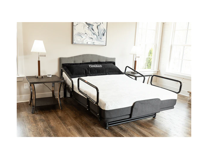 Allow for more support getting out of bed with the Flex-a-Bed siderails. There are both head and foot siderails that allow for more support, and staying in bed is one toss and turn. Each side rail is a scissor hinge that allows for easy adjustment.