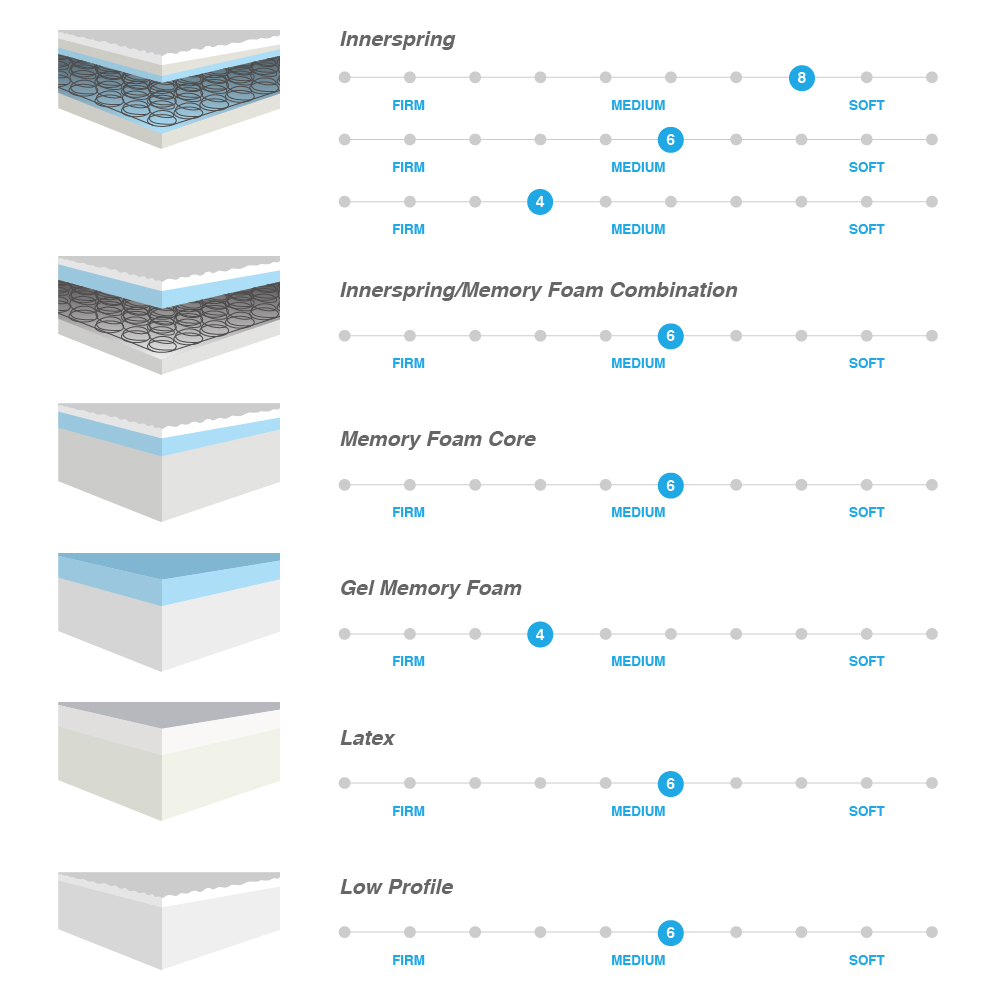 - Memory foam combo is medium comfort with visco memory foam to contour to the body and innerspring for support.
