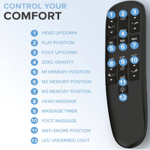 - Flat Button, Anti-Snore, and Zero-Gravity Button
