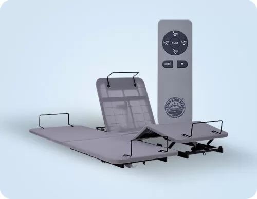 Experience the first hinge technology adjustable bed by Roadstar. The hinge technology is useful for any full time RVer with underbed storage. The storage hinge bends at 49.87 inches allows for ultimate space to access the under-bed storage.